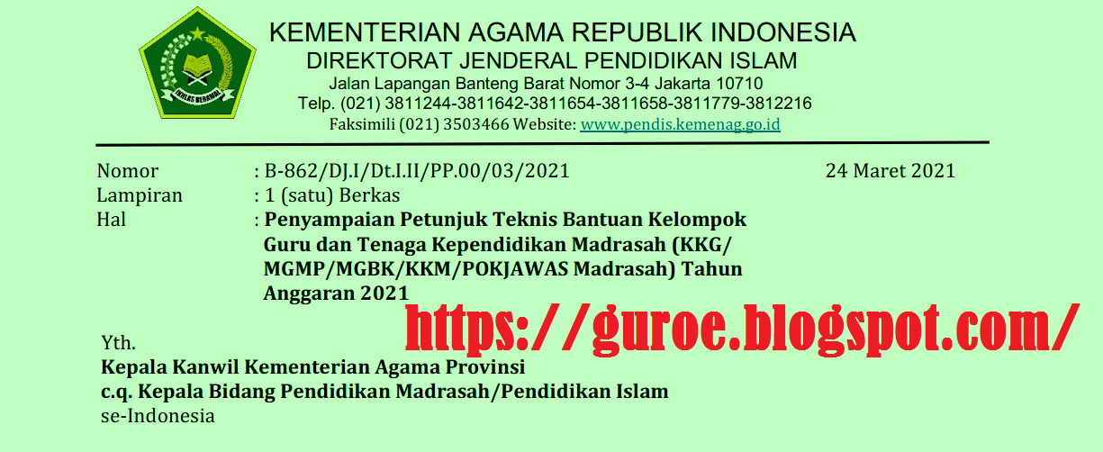 tentang Surat edaran dan Kepdirjen Pendis Nomor 606 Tahun 2021 tentang Juknis Bantuan KKG MGMP MGBK KKM POKJAWAS Madrasah Tahun Anggaran 2021. Semoga ada